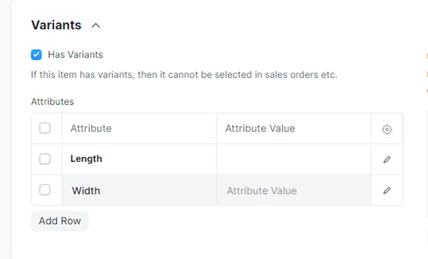 By virtue of type of material involved, all raw materials will be managed in Stock Unit of Measure (Stock UOM) in ‘Kg’ only. Also, since the same material is used in multiple Manufacture parts in various cut sizes or lengths, this item will always be enabled with Variant. The basic material defined in the DMS module will always get transferred to production as Template only. All variants are created in production based on requirement of Manufacture part. For Sheets/Plates there will be Length and widths as variants and for running length materials such as Tube, Square, Hexagon, Round etc. will have Length only as variant.