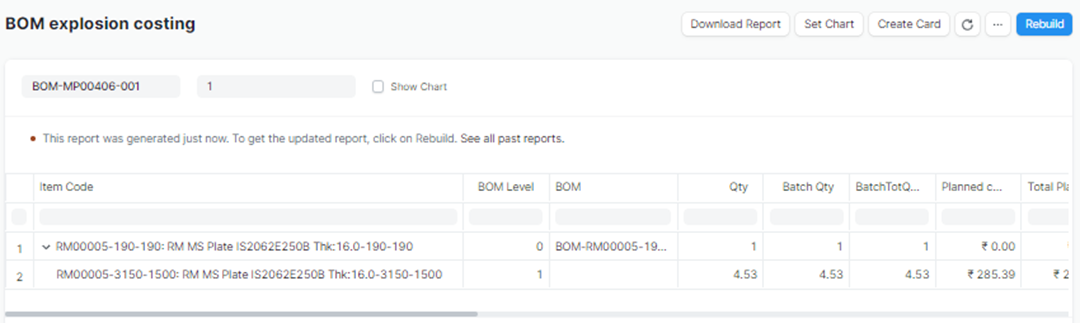 In order to consolidate the requirement of same Raw Material of different sizes in various parts in a product, this Cut Size Raw material should have a BOM where the standard size Variant will be the child part with UOM as Kgs and quantity being the same as maintained in Item master for one Number. . Also, the out put should be same quantity in Kgs.