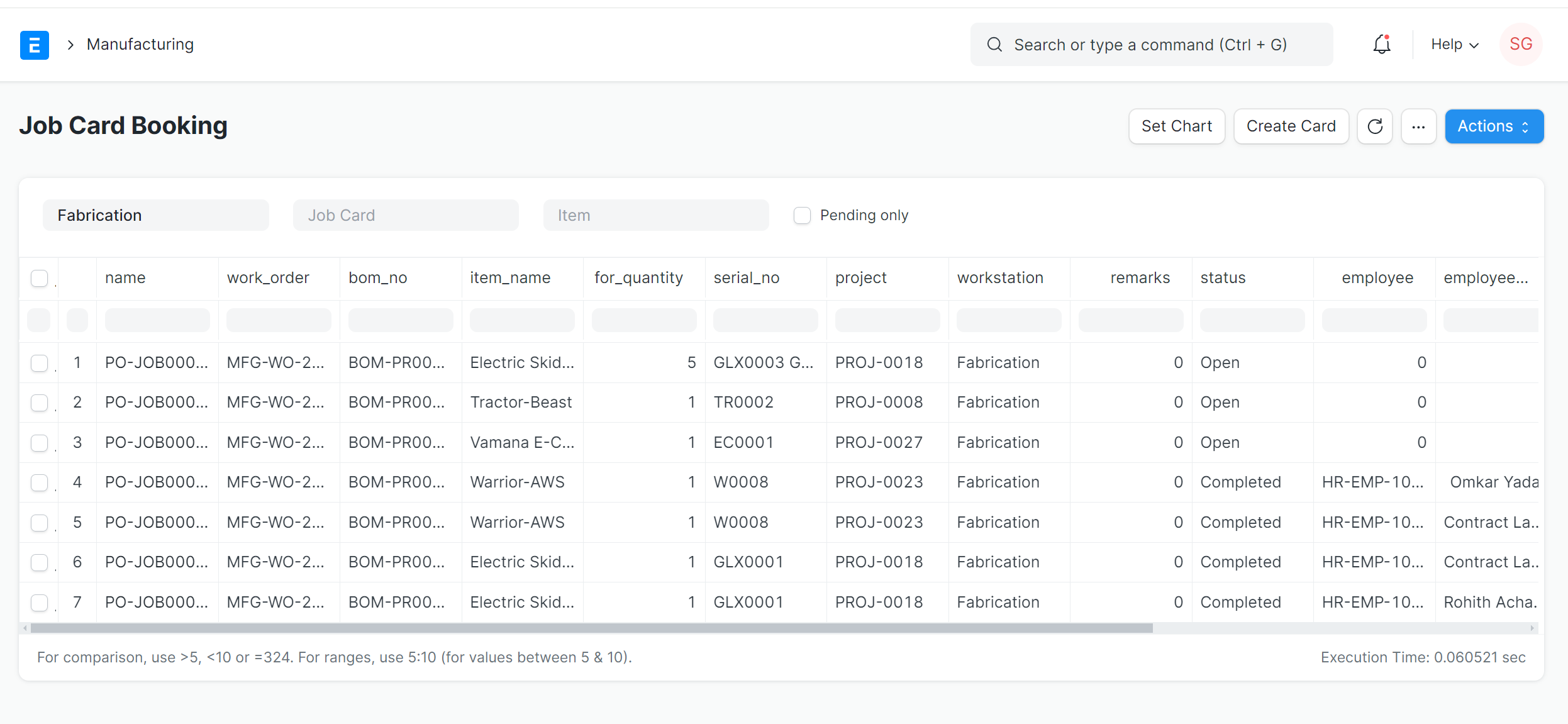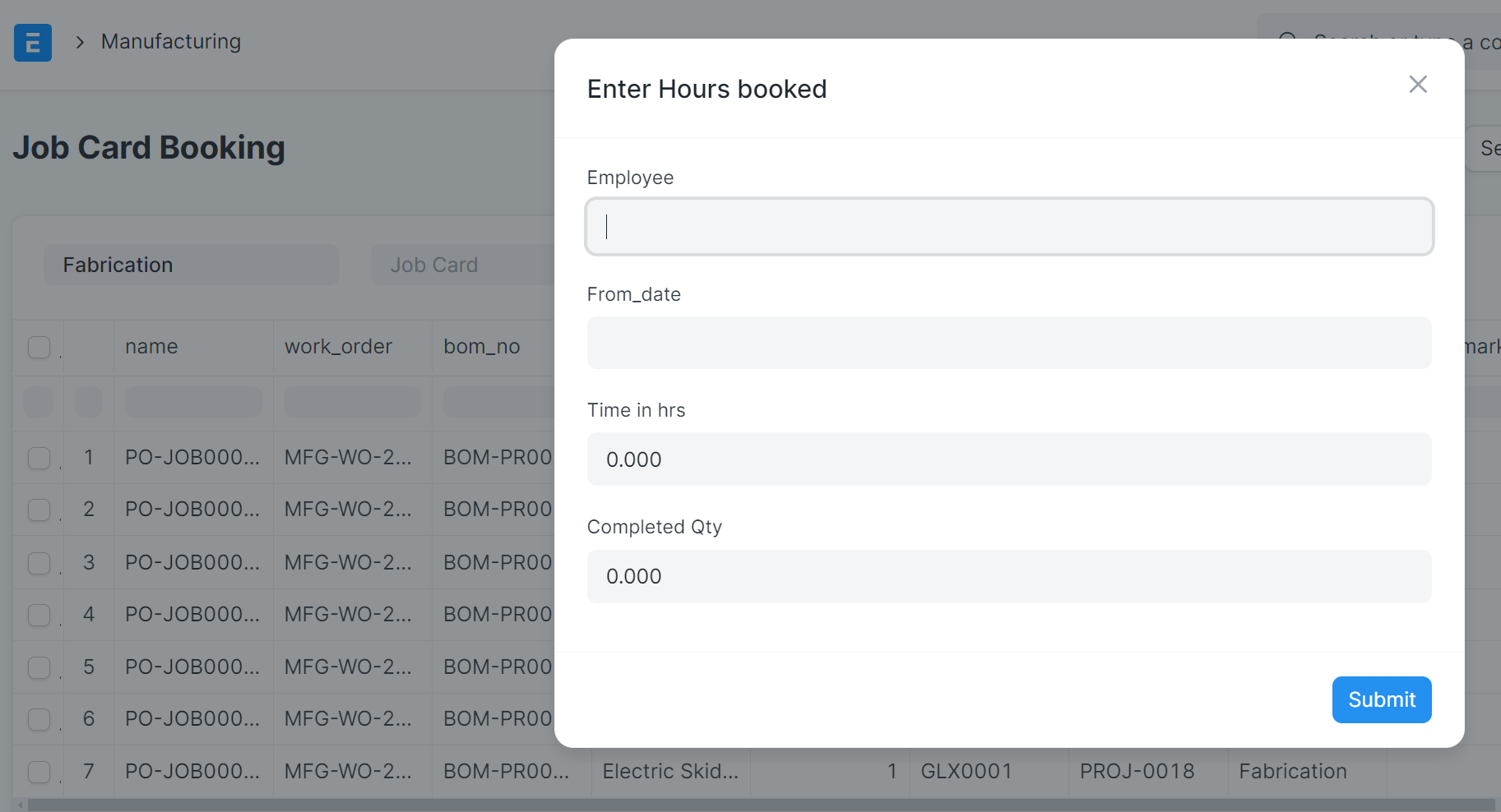 Work Order and Job Card Booking in ERP